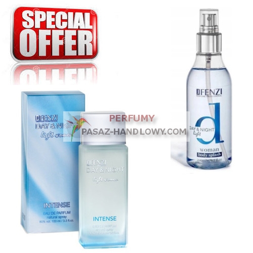 JFenzi Day & Night Light Intense Women - zestaw promocyjny, woda perfumowana 100 ml, perfumowana mgiełka do ciała [body splash] 200 mlJFenzi Day & Night Light Intense Women - zestaw promocyjny, woda perfumowana 100 ml, perfumowana mgiełka do ciała [body splash] 200 mlJFenzi Day & Night Light Intense Women - zestaw promocyjny, woda perfumowana 100 ml, perfumowana mgiełka do ciała [body splash] 200 ml