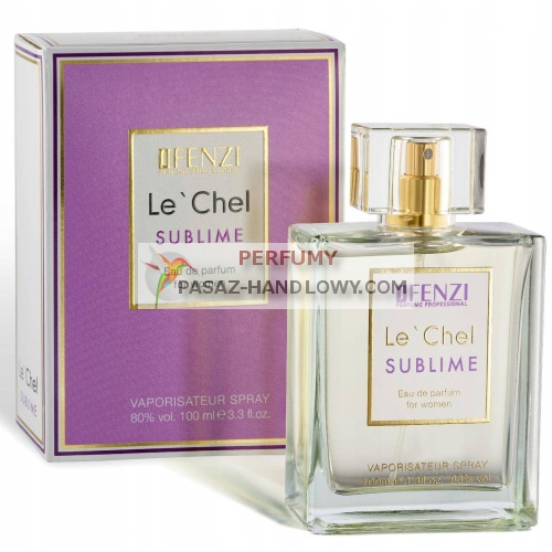 JFenzi Le Chel Sublime to wyjątkowa propozycja dla miłośniczek klasycznych, ale i świeżych nut. Ta woda perfumowana to inspiracja kultowym zapachem – zamiennik perfum Chance Eau Splendide Chanel, który łączy w sobie kobiecość i energetyzującą aurę.