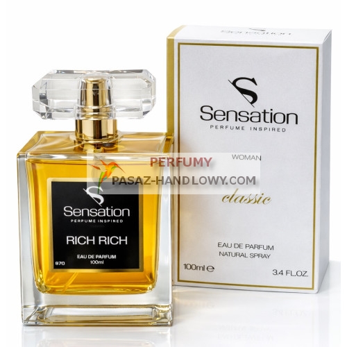 Sensation 070 Richy Richy to zapachowa definicja kobiecego magnetyzmu dostępna dla każdej dżentelmenki. Jeśli cenisz charakterystyczny, gęsty i wybitnie elegancki klimat Ricci Ricci, ten odpowiednik zachwyci Cię swoją wiernością i projekcją. Głównym motywem jest tu świeżość rabarbaru, która w połączeniu z kremową tuberozą tworzy harmonijną, ponadczasową całość.
